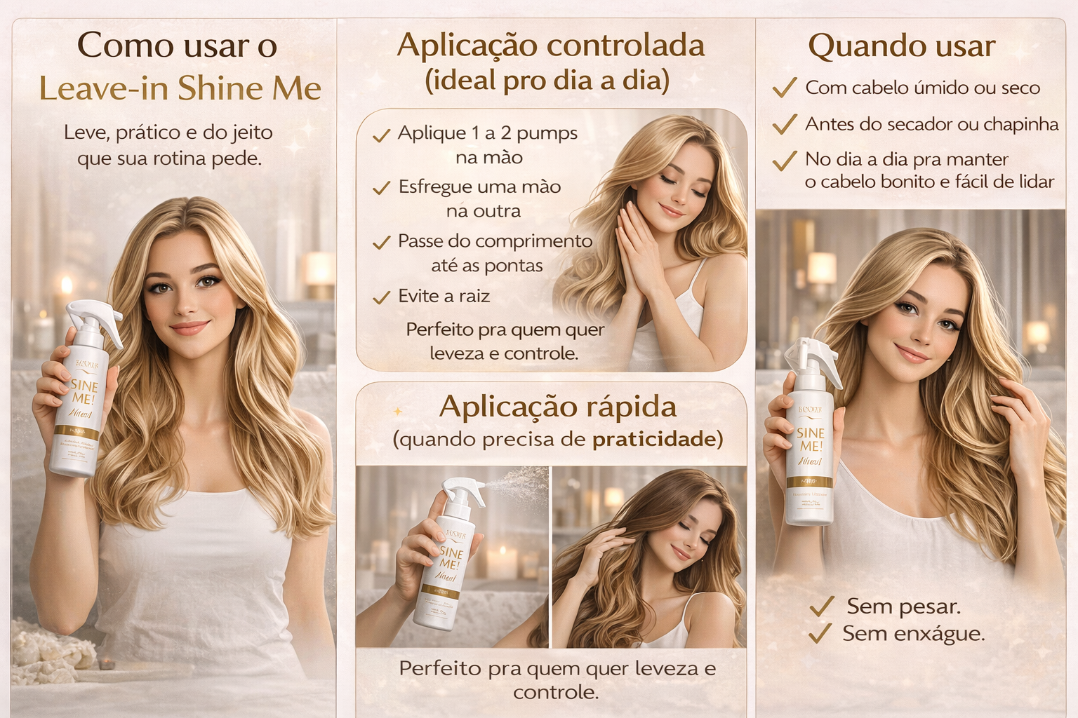 Ideal para quem busca praticidade, tratamento e finalização em um só produto.
