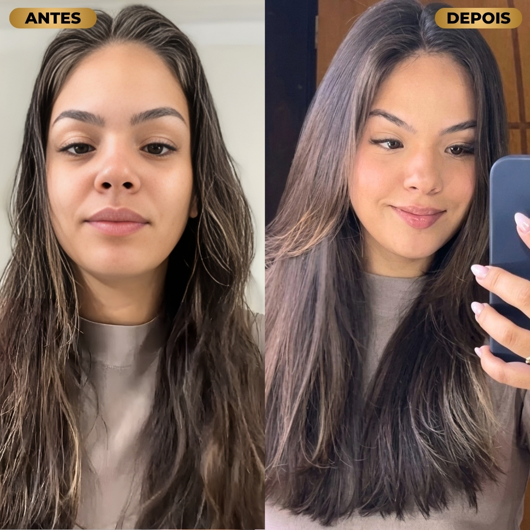 Desembaraça, protege e alinha os fios no dia a dia. Com proteção térmica, brilho e nutrição sem pesar.